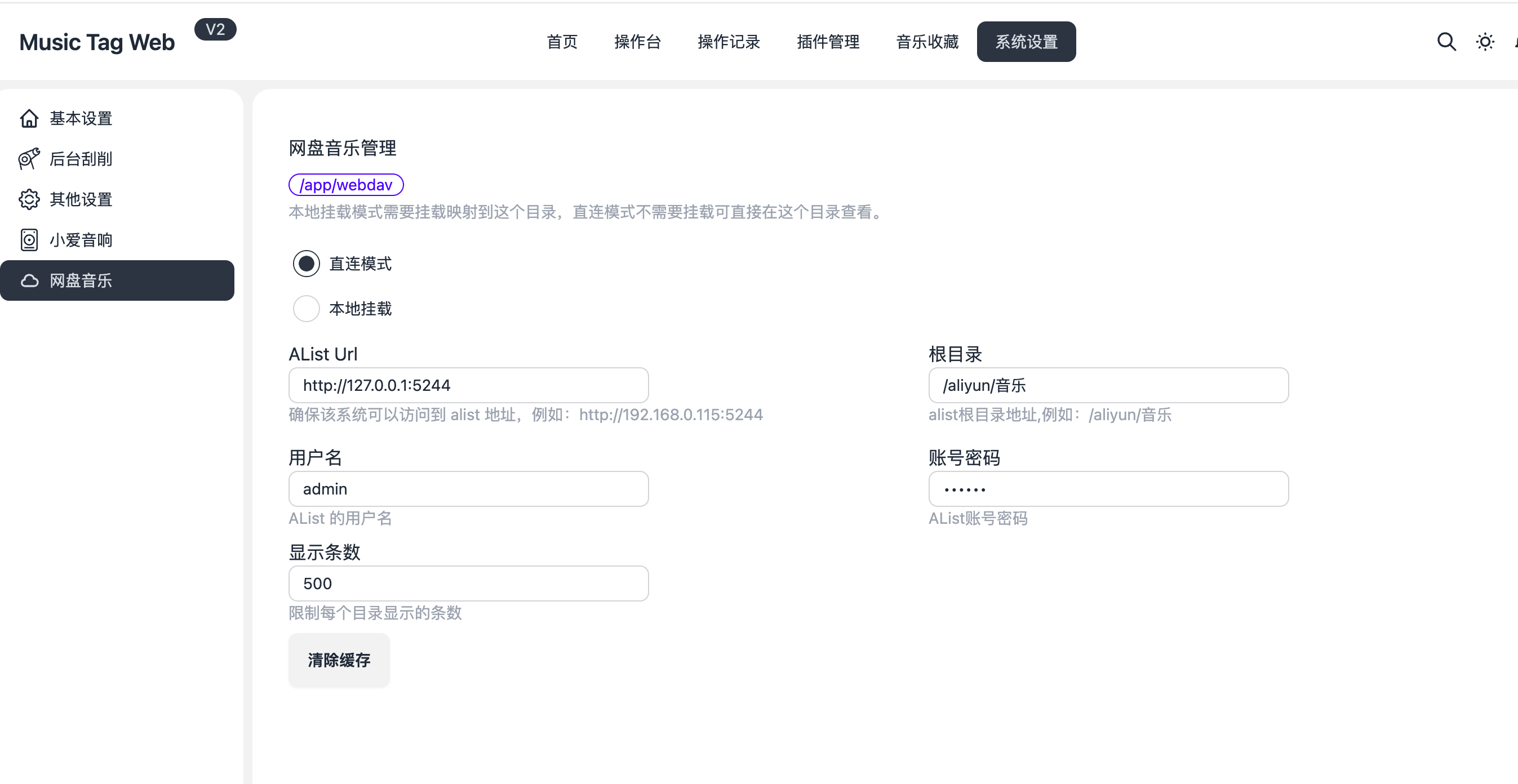 * 清除缓存：本项目会缓存音乐文件的元数据，防止频繁访问网盘 API。