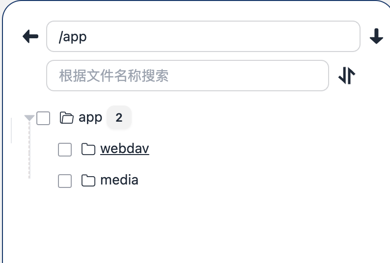 配置完成后查看-操作台- /app/webdav 目录 是否出现网盘文件。如果你当前目录是/app/media ，后退一层目录就能看到 /app/webdav目录，点击进入就是 网盘中配置的根目录下的文件和目录。